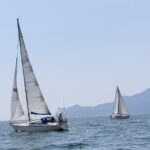 マンスリーレース酷暑の7月6日日曜日定例のレースを開催しました。なかなか参加艇がそろわず3艇のみでの実施です。朝方から3~4m/sの南風がそよぐ中、10時15分スタートです。コースは、廿日市港口を発着地点とし津久根島、航路西端緑ブイを回る短いものです。緑ブイまでは、クローズホールド3~4ノット程度で走ります。緑ブイを折り返してからはクオーターで3~4ノット。追い風の下りは暑い! ゴール時間は、カナロア11時30分、ビーナスK11時35分、シーホライズン11時38分でした。