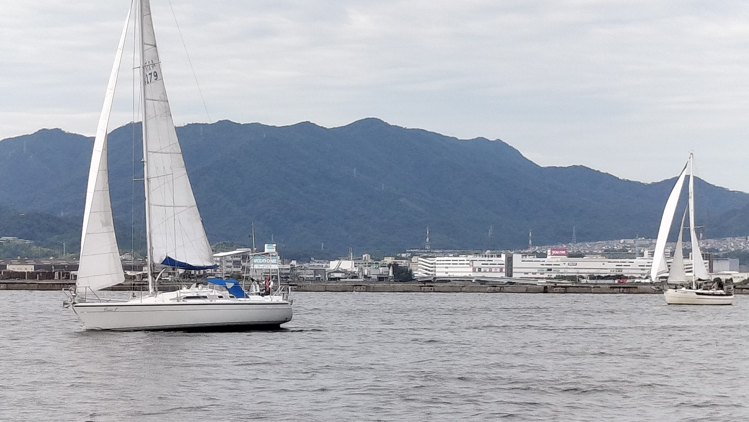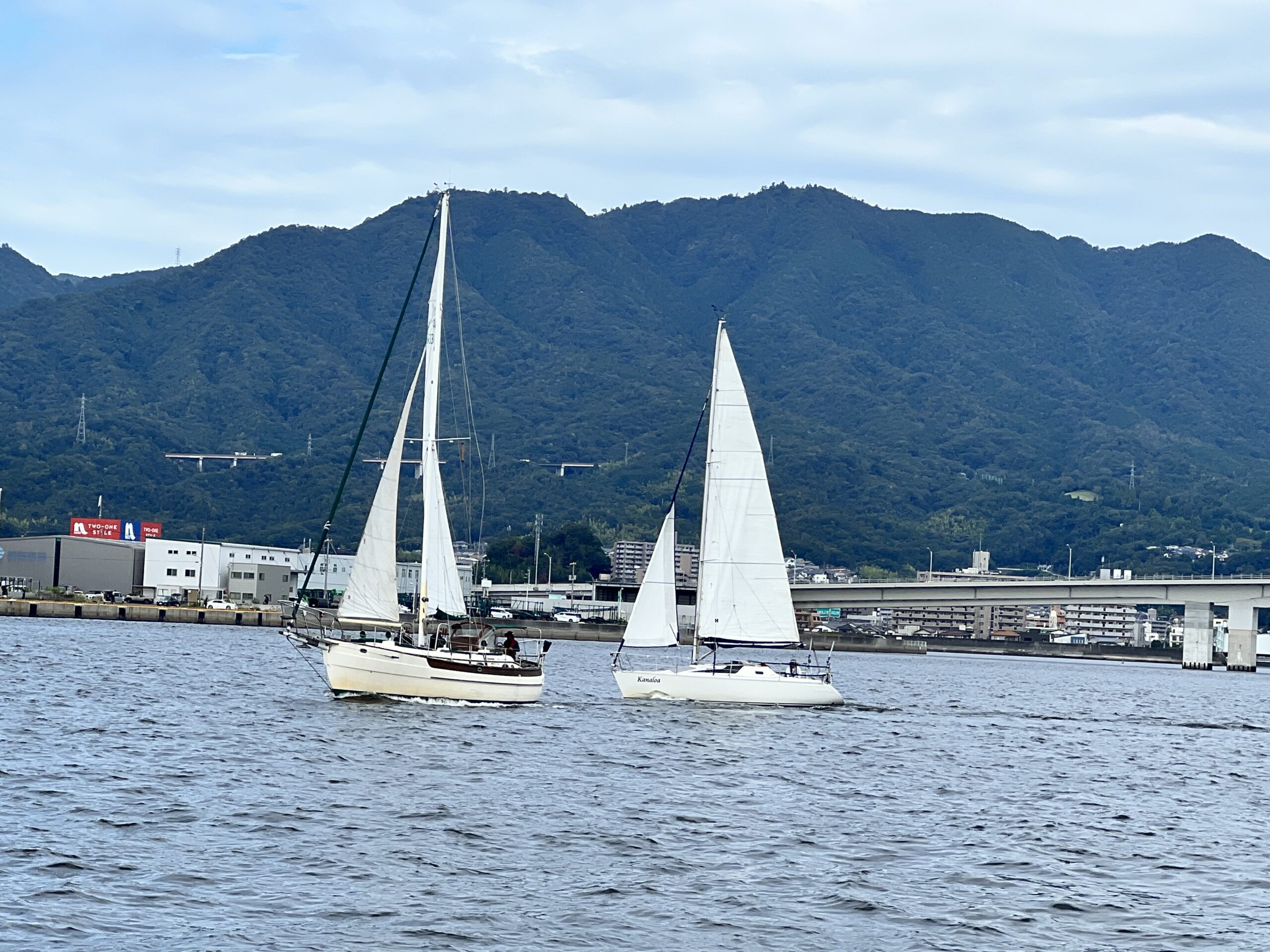 前日の雨上がりの弱い北風が吹く9月27日土曜日、定例のレースを開催しました。参加はの3艇。風が弱い上、航行中の牡蛎いかだ曳航船数艇を避けるためコースは、廿日市港口~航路西端緑ブイ往復の短縮版。10:30のスタートから緑ブイまでは何とか3knot前後で走れたものの後半はどんどん風が落ちゴール手前はほぼ無風に。着時間は、ビーナスK 11:33、カナロア11:51、スペルバンド DNFでした。秋を感じる爽やかコンディションでしたが吹いて欲しかった。涼しくなったので、他のヨットも数艇出られてました。