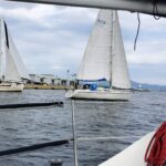 マンスリーレース前日の雨上がりの弱い北風が吹く9月27日土曜日、定例のレースを開催しました。参加はの3艇。風が弱い上、航行中の牡蛎いかだ曳航船数艇を避けるためコースは、廿日市港口~航路西端緑ブイ往復の短縮版。10:30のスタートから緑ブイまでは何とか3knot前後で走れたものの後半はどんどん風が落ちゴール手前はほぼ無風に。着時間は、ビーナスK 11:33、カナロア11:51、スペルバンド DNFでした。秋を感じる爽やかコンディションでしたが吹いて欲しかった。涼しくなったので、他のヨットも数艇出られてました。